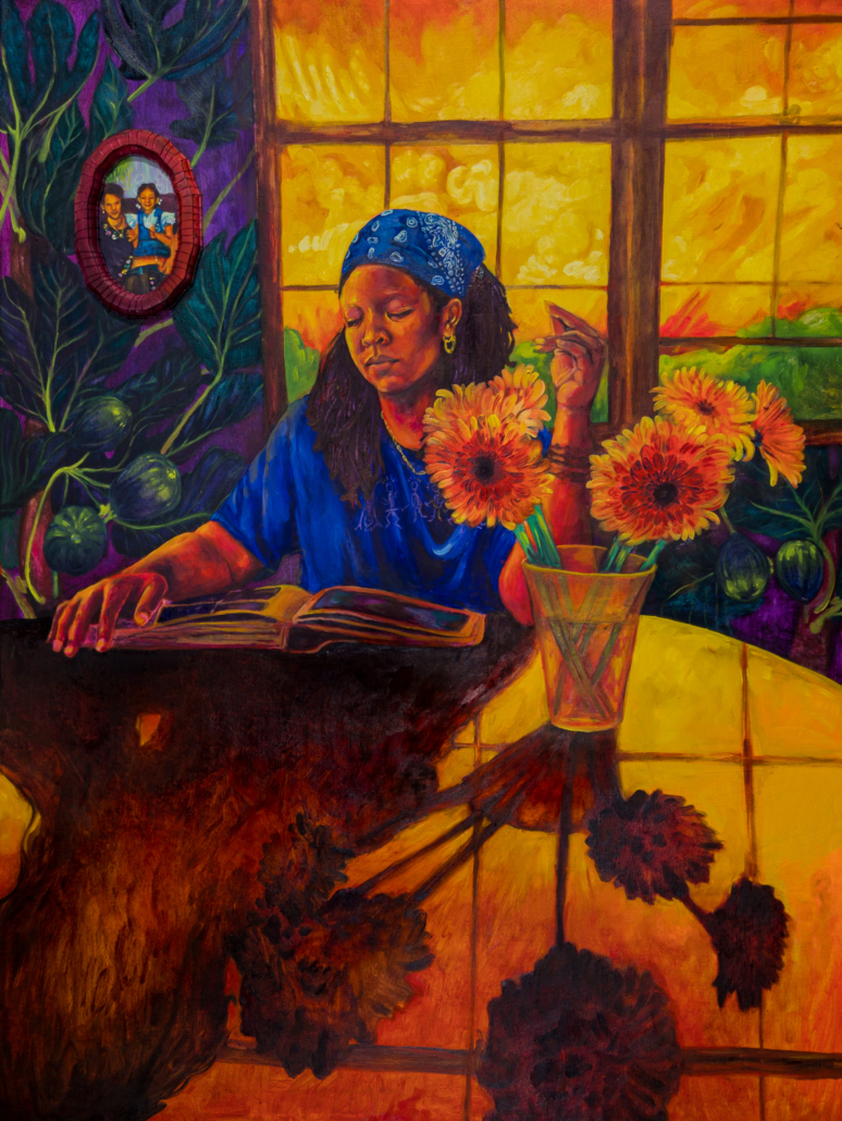 Sheherazade Thénard is an award winning and driven artist, curator and educator based in Miami. Their work reclaims the layered histories of my family’s assimilation from Martinique to the U.S., blending Afro-Caribbean symbolism, Black feminist media, and my experience as a Black queer artist in the South. Through vibrant yet dark palettes, she transforms autobiographical memories into reimagined geographies, creating textured, luminous spaces that evoke belonging, protection, and ancestral connection. As an educator and curator, they are deeply committed to the history of arts and how shared narratives shape community understanding and connection.
